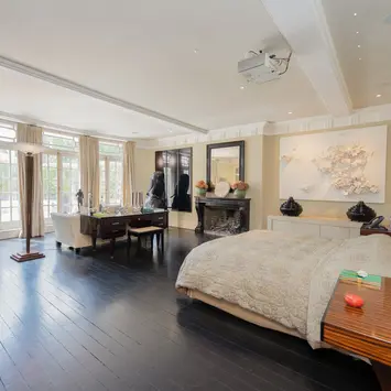 On the lower ground floor, a grand study of impressive proportions features bespoke finishes and an interior balcony overlooking the lavish wellness suite. The modernization of the mansion included the addition of a wellness suite, complete with a swimming pool, bar, sauna, and relaxation zone. The centerpiece of this space is a remarkable glazed courtyard with a soaring glass ceiling, which floods the area with natural light. Three large bedrooms, all with en-suite bathrooms, are also located on the lower ground floor, along with a guest WC and two utility rooms. A separate street entrance at the front of the property provides convenient access to this level.